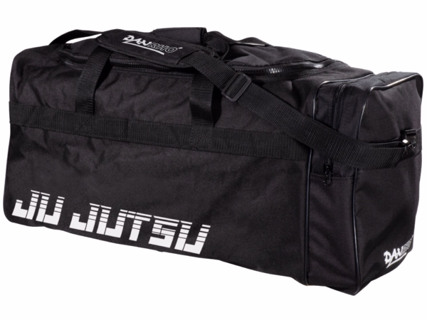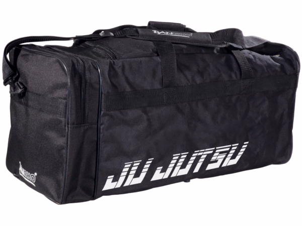 This compact Martial training bag with Ju-jutsu is made of durable synthetic fiber fabric. Duffel bag with a large main compartment and a side compartment. With adjustable shoulder strap and two handles.