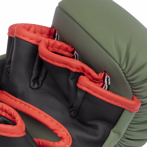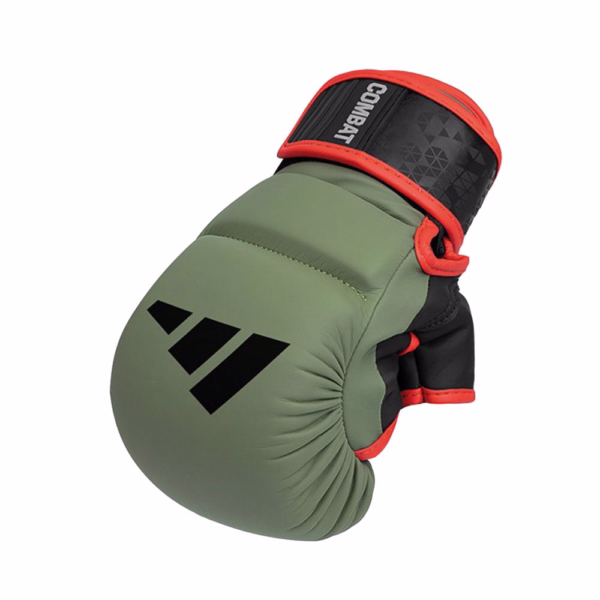 Tu so nove Adidas MMA Sparring Combat 50 rokavice, odličen dizajn z najboljšo funkcionalnostjo, ki jo označuje Combat Line. Rokavice so izdelane iz zelo kvalitetnega FLX 3.0 PU umetnega usnja in za optimalno blaženje opremljene s patentirano Adidas TILT tehnologijo, večslojno oblazinjenje, ki preprečuje upogibanje zapestja saj je upogib že v rokavici, kar pomeni, da se rokavice med udarjanjem veliko boljše obnaša, udarec pa je veliko bolj ergonomičen in zato boljši. V notranjosti rokavic najlonska podloga zagotavlja udoben občutek. Zapiranje z dolgim trakom na ježka zagotavlja dobro stabilnost zapestja. Atraktivna zelena Combat barva dela te ščitnike še posebej atraktivne.